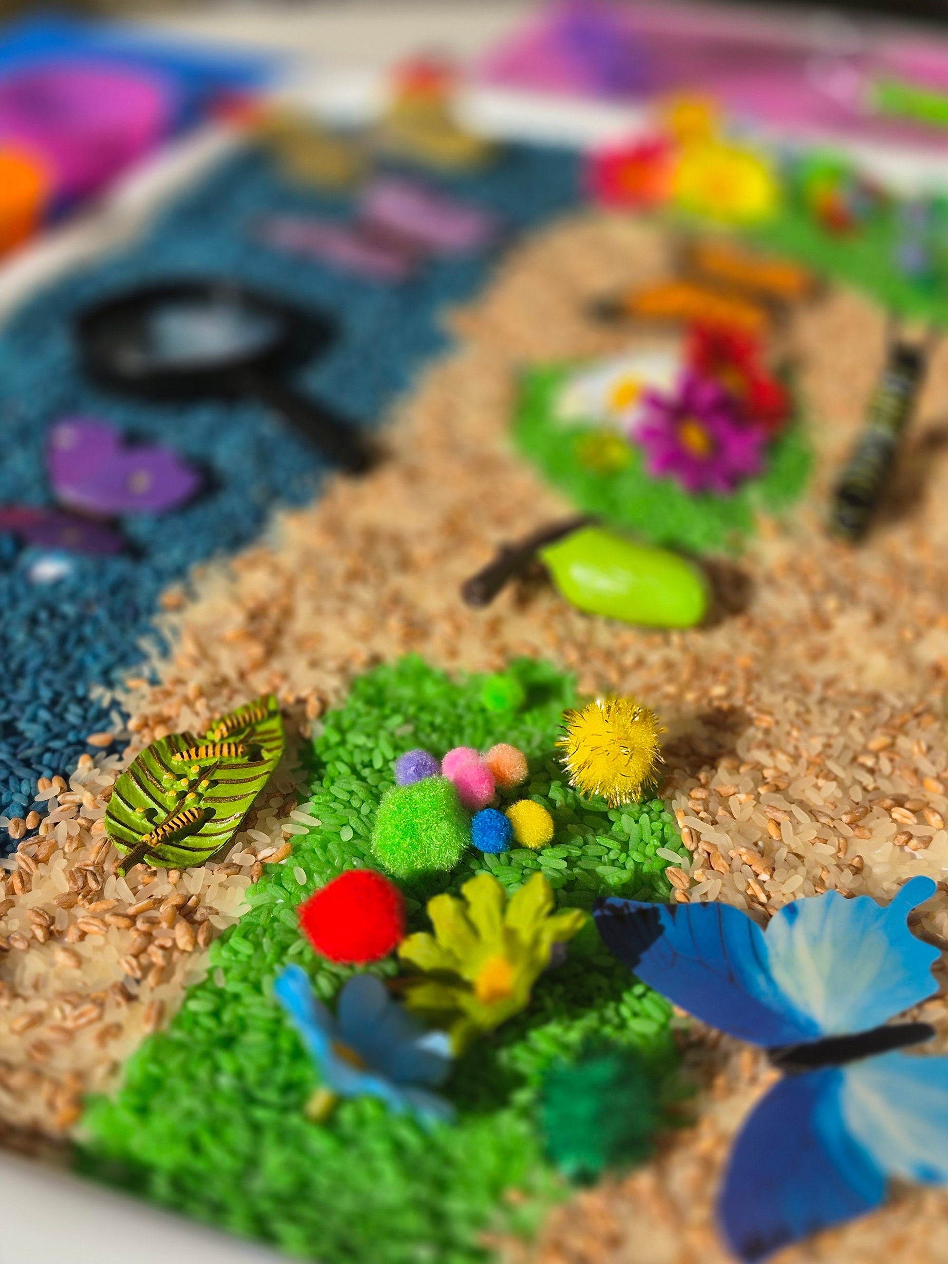3× Bags of Colored Rice (Sensory-Rich Garden Base) – Promotes tactile exploration, bilateral coordination, and calming sensory regulation.
